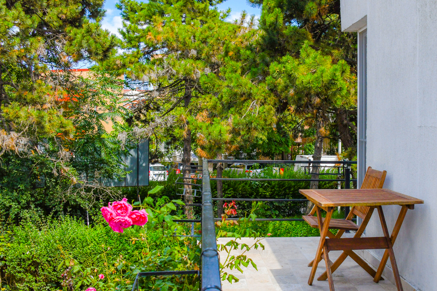Vilele beneficiaza de terase proprii generoase la parter si la etaj, dotate cu mese si scaune. De asemenea, fiecare are acces individual la terase foarte generoase deasupra vilei, un loc de relaxare exceptional, inconjurat de pergole de lemn si dotat cu sezlonguri pentru plaja/ relaxare. La dispozitia turistilor sunt 2 gratare. Fumatul este permis doar in spatiile exterioare (terase). In fiecare vila se pot caza maxim 6 persoane (inclusiv copiii).
