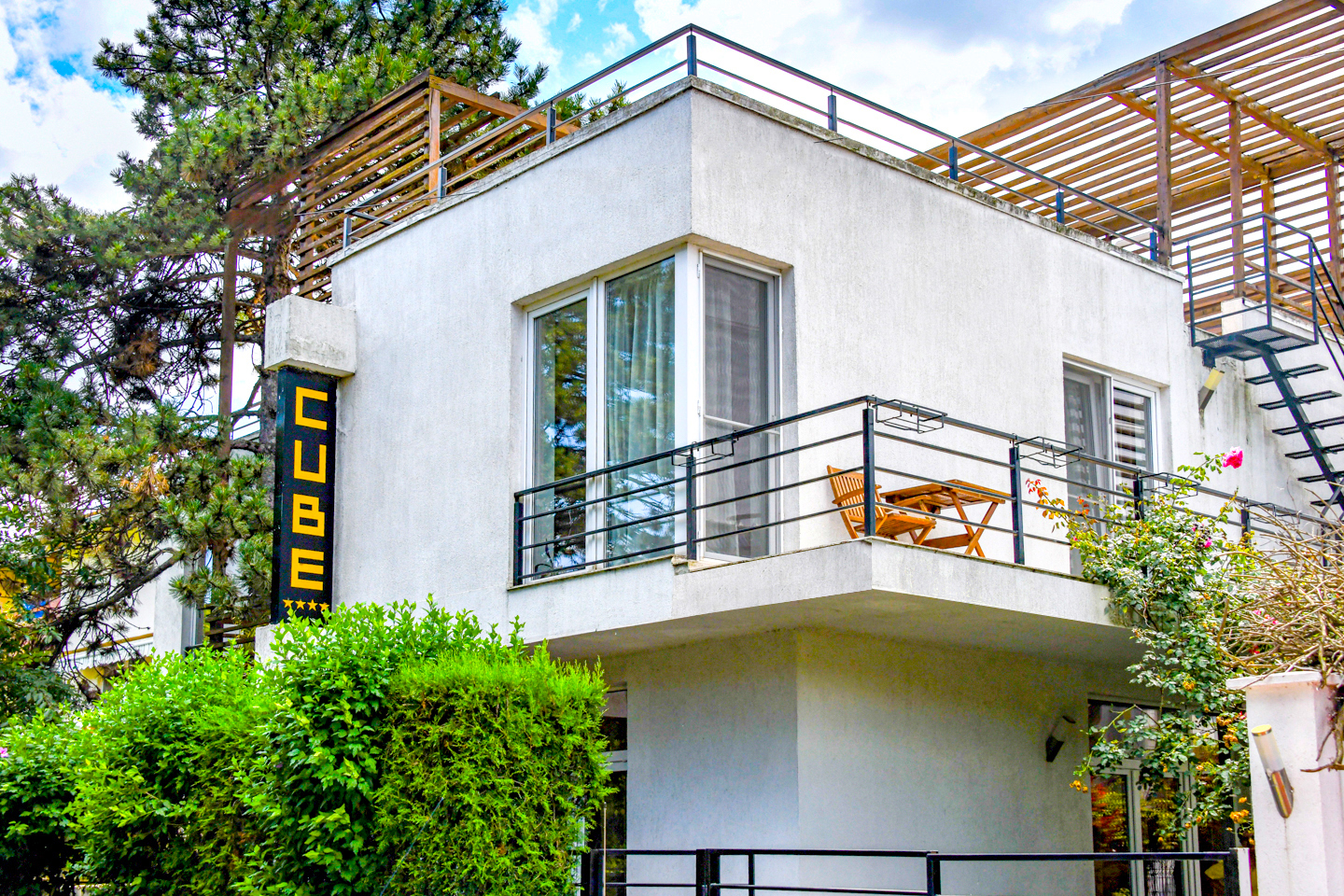 VILA CUBE**** este situată într-o zonă liniștită, rezidențială a stațiunii, la 500m de malul mării și la 200m de Centru, langă Sanatoriul Balnear Grand.